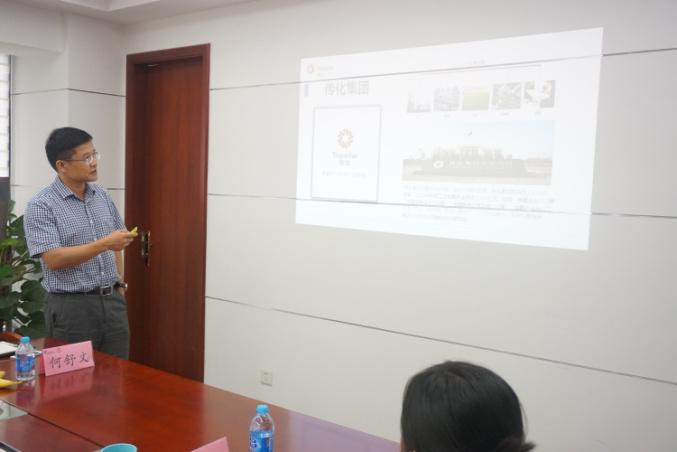 上圖為傳化合成材料總經(jīng)理張學(xué)琪先生在進(jìn)行公司介紹