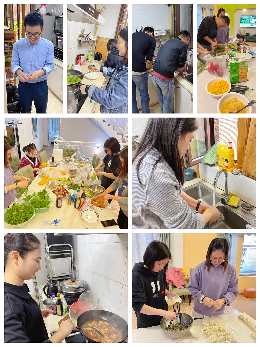 平時(shí),大家都是兢兢業(yè)業(yè)的工作者,而在這歡樂場(chǎng)合下,大家又搖身一變,在廚房里各顯神通,為大家奉上自己的拿手好菜??矗蹅凎柘榈男』锇槎际恰靶袆?dòng)派”——洗菜、擇菜、切菜、炒菜...,為了呈現(xiàn)美味的午餐一起有序忙碌著。