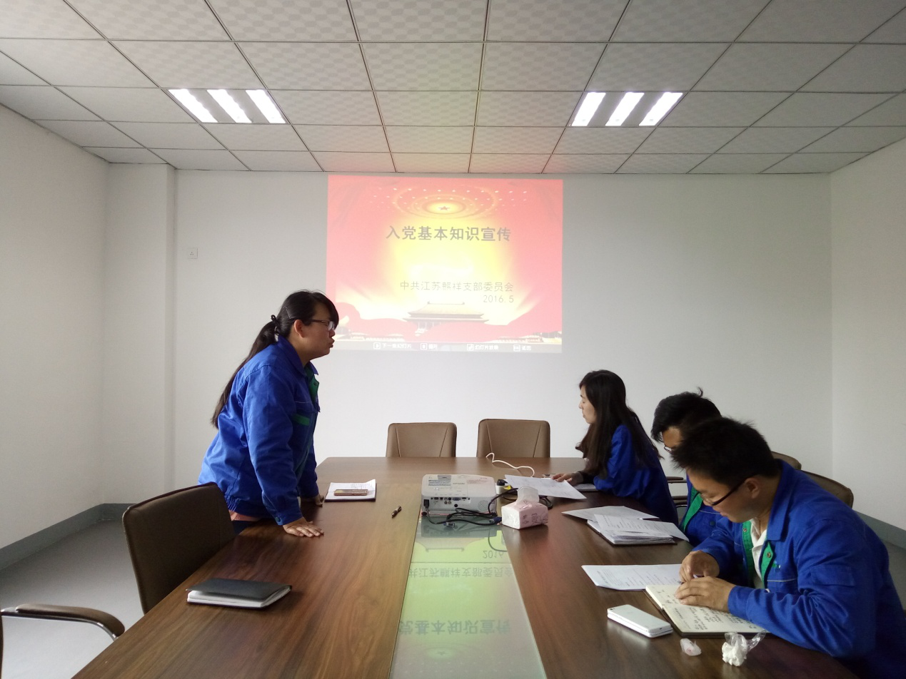 5月9日,江蘇麒祥高新材料有限公司黨支部積極部署推進“兩學一做”學習教育,以提高組織創造力、凝聚力、戰斗力和黨員隊伍整體素質為根本,開展了黨員“亮身份、當先鋒”活動。