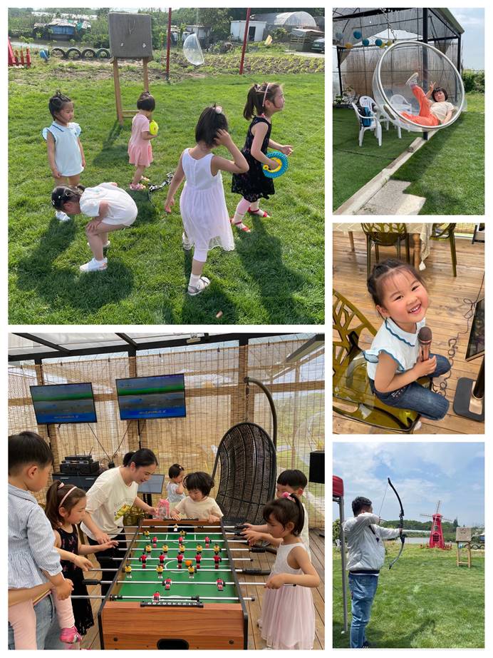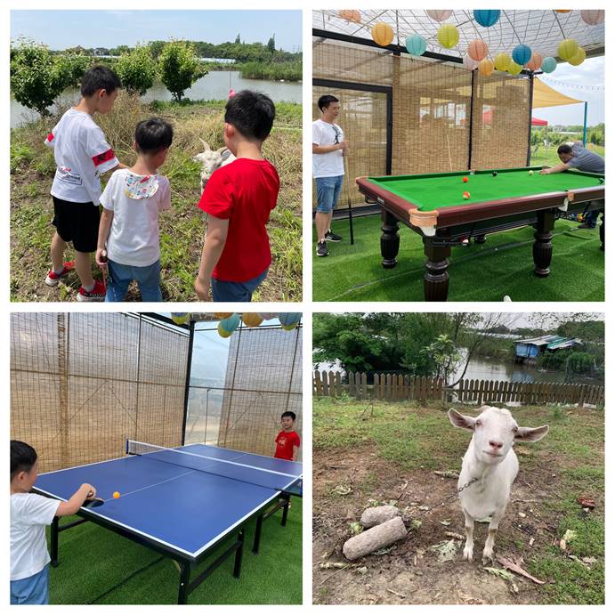 農莊環境景色怡人、環境優美,一片綠茸茸的草坪仿佛給大地鋪上了一層綠色的地毯,小朋友們可以盡情的草地上奔跑、嬉戲。農莊的娛樂設施也種類繁多,垂釣、射箭、桌球、K歌、投喂小動物應有盡有,大家三五成群自由活動,忘卻了生活中的壓力與煩惱。