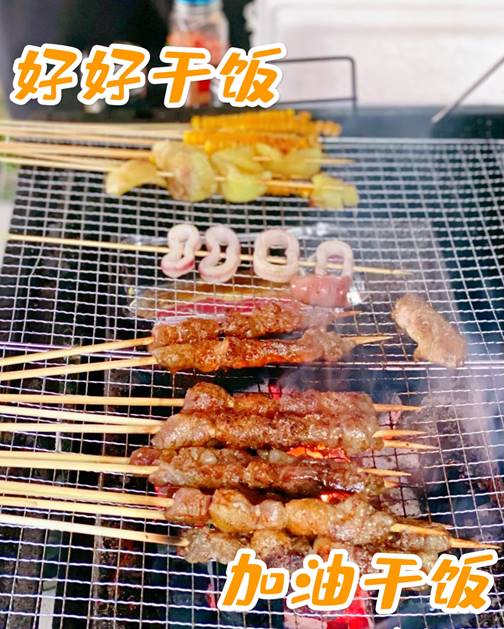驕陽下,燒烤的美味讓整個場地都飄香四溢,香噴噴的肉串看著讓人垂涎欲滴,享受著燒烤的美味。
