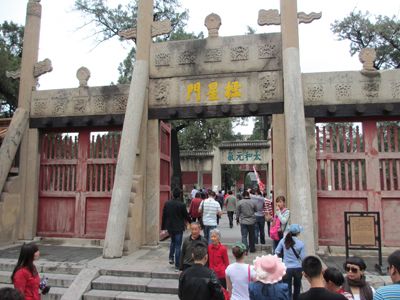 首先我們?nèi)チ丝讖R,在中國(guó),孔廟有很多,但歷史等級(jí)應(yīng)屬位于山東曲阜市南門內(nèi)的第一座孔廟,它又稱圣廟,與北京故宮、承德避暑山莊并稱東方三大古建筑群。我們沿著護(hù)城河慢慢向前走, 看著這些古老威嚴(yán)的建筑,驚嘆古人的偉大和智慧。