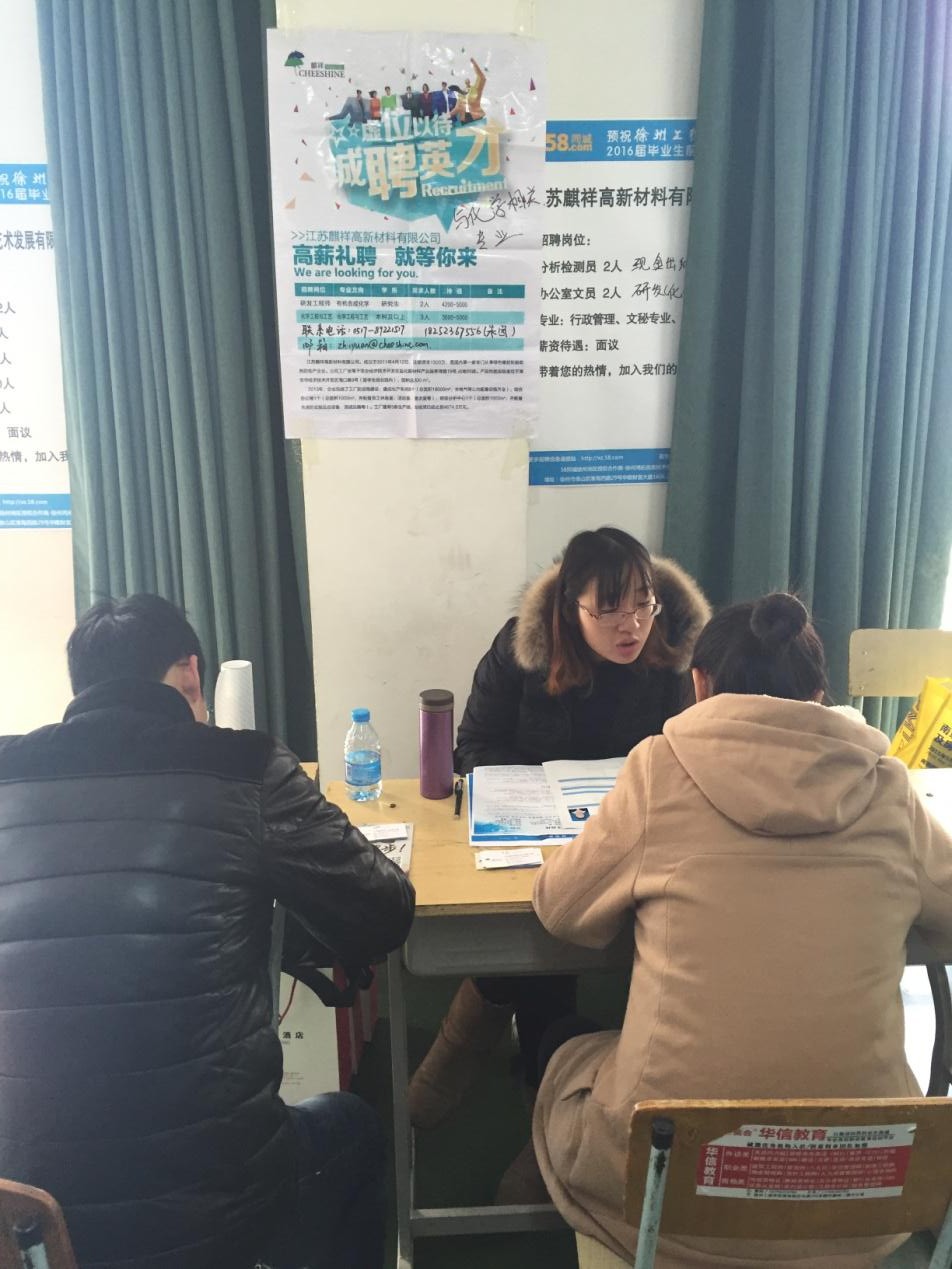 2015年11月29日,麒祥來到美麗的徐州,參加徐州工程學院2016屆畢業生就業雙選會。此次參會企業眾多,招聘現場人頭攢動。雖然天氣寒冷,但是仍不減同學們的熱情。