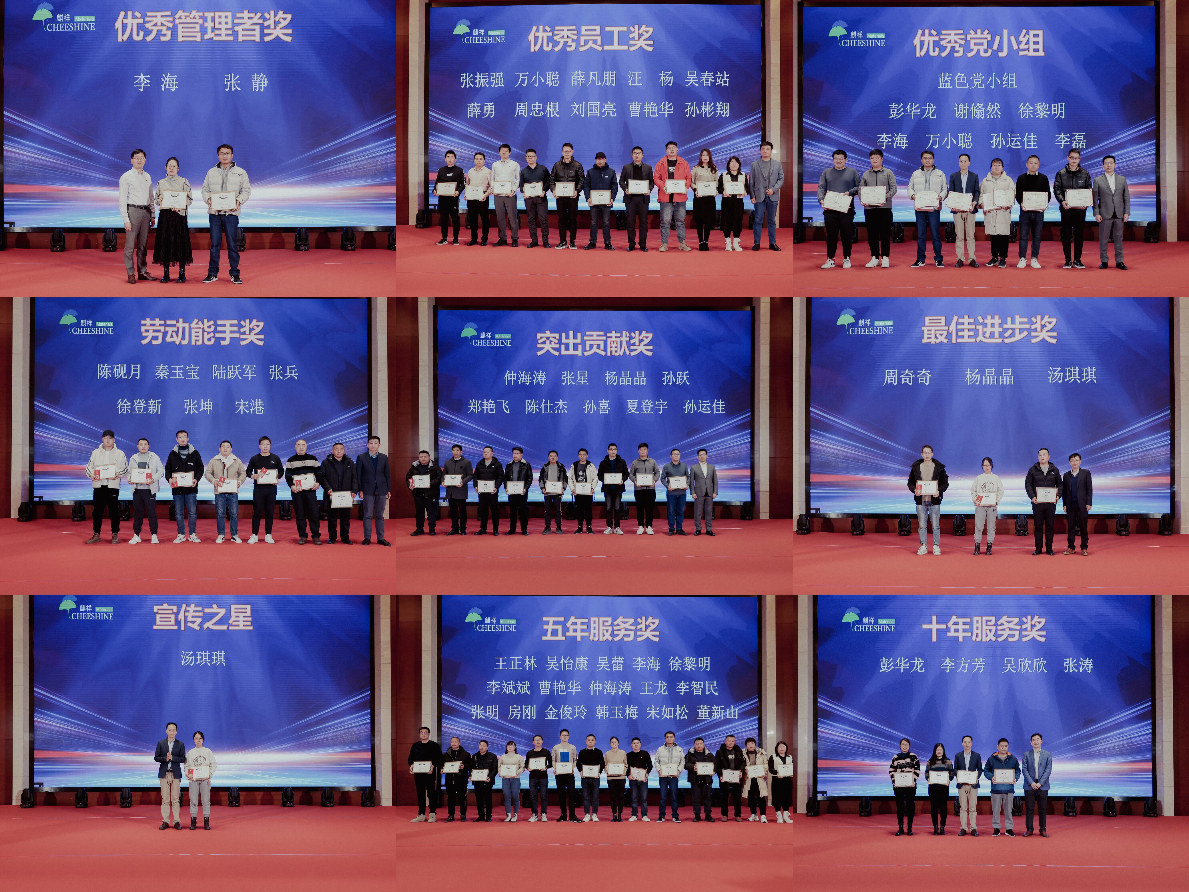 大會進行第二項,2022年度表彰儀式。這一年來我們麒祥人攜著輝煌載著收獲,留下了一行行堅實的足跡,經歷了艱辛也收獲了成長。公司在取得各項傲人成績的同時,深知這些功績離不開麒祥涌現出的一批批有志之才和基層員工。隨著一陣陣熱烈的掌聲響起,由7位高層領導先后頒發了勞動能手獎、最佳進步獎、優秀員工獎、優秀管理者獎、五年服務獎、十年服務獎、宣傳之星獎、優秀黨小組獎和突出貢獻獎。此次表彰頒獎儀式大大激勵了在座的每位員工,大家紛紛為獲獎者送上了熱情的掌聲和衷心的祝賀。