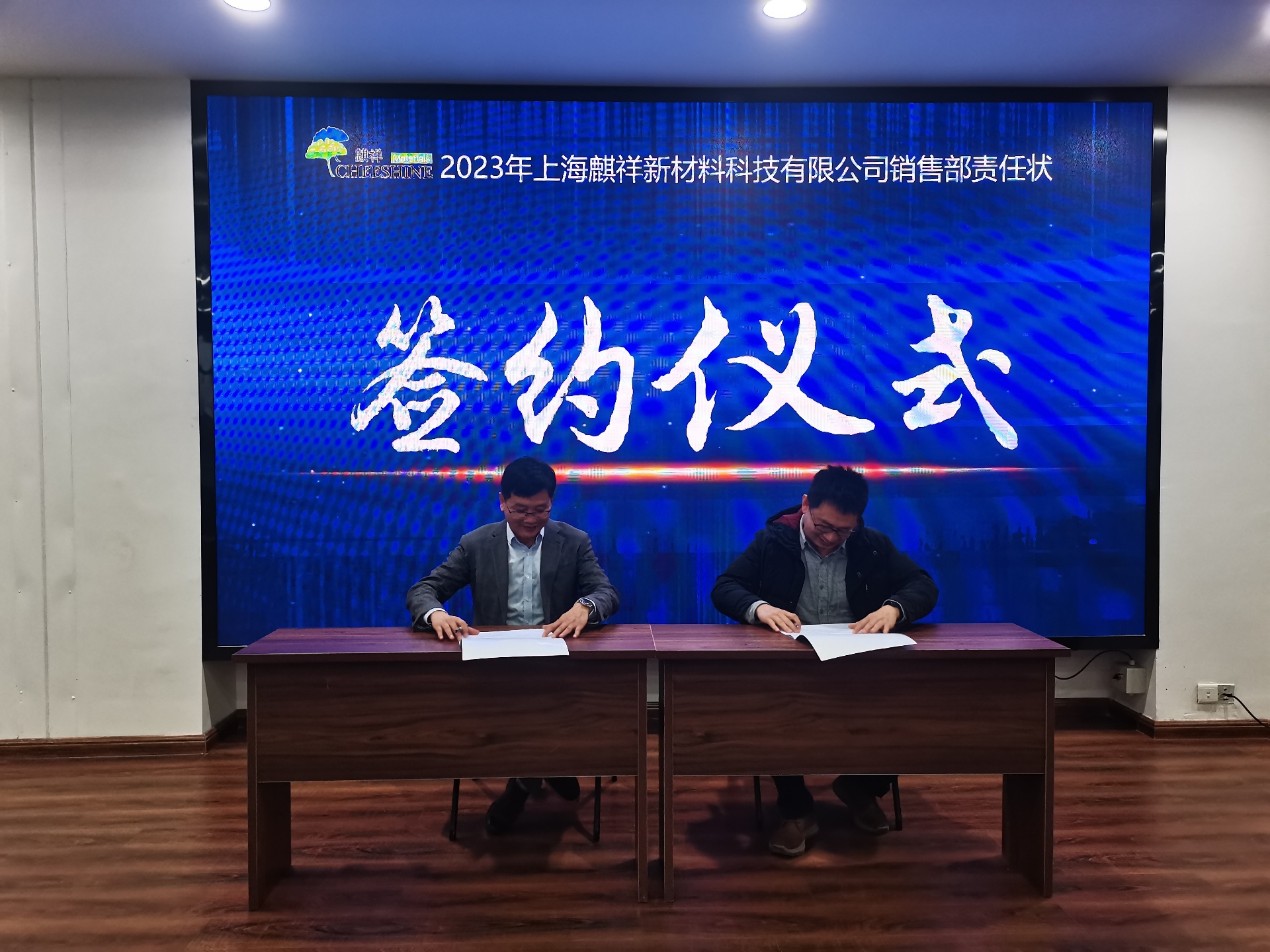 會議最后,麒祥新材料副總經(jīng)理陳熾與各銷售負(fù)責(zé)人簽署2023年銷售目標(biāo)責(zé)任狀,各個銷售團(tuán)隊將圍繞公司戰(zhàn)略規(guī)劃,凝心聚力,乘風(fēng)破浪,再創(chuàng)輝煌!