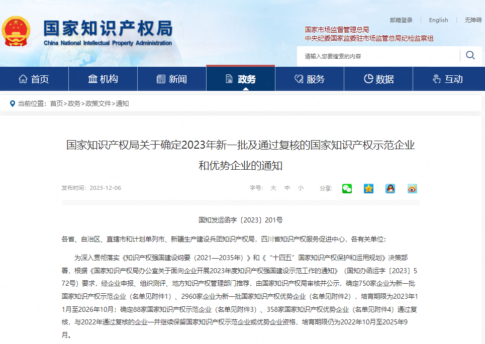 近日,國家知識產權局發布了2023年國家知識產權優勢企業名單,江蘇麒祥高新材料有限公司成功入選“國家知識產權優勢企業”。